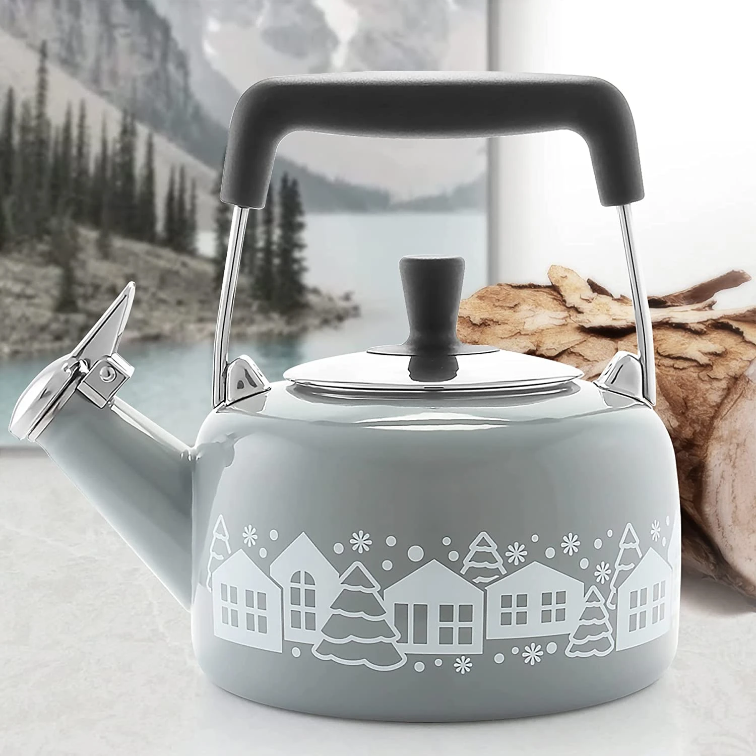 - SCANDINAVIAN STYLING: Clean lines and natural wood help create a design that is distinctly northern European; the light color beautifully accents the enamel finish of the teakettle’s body