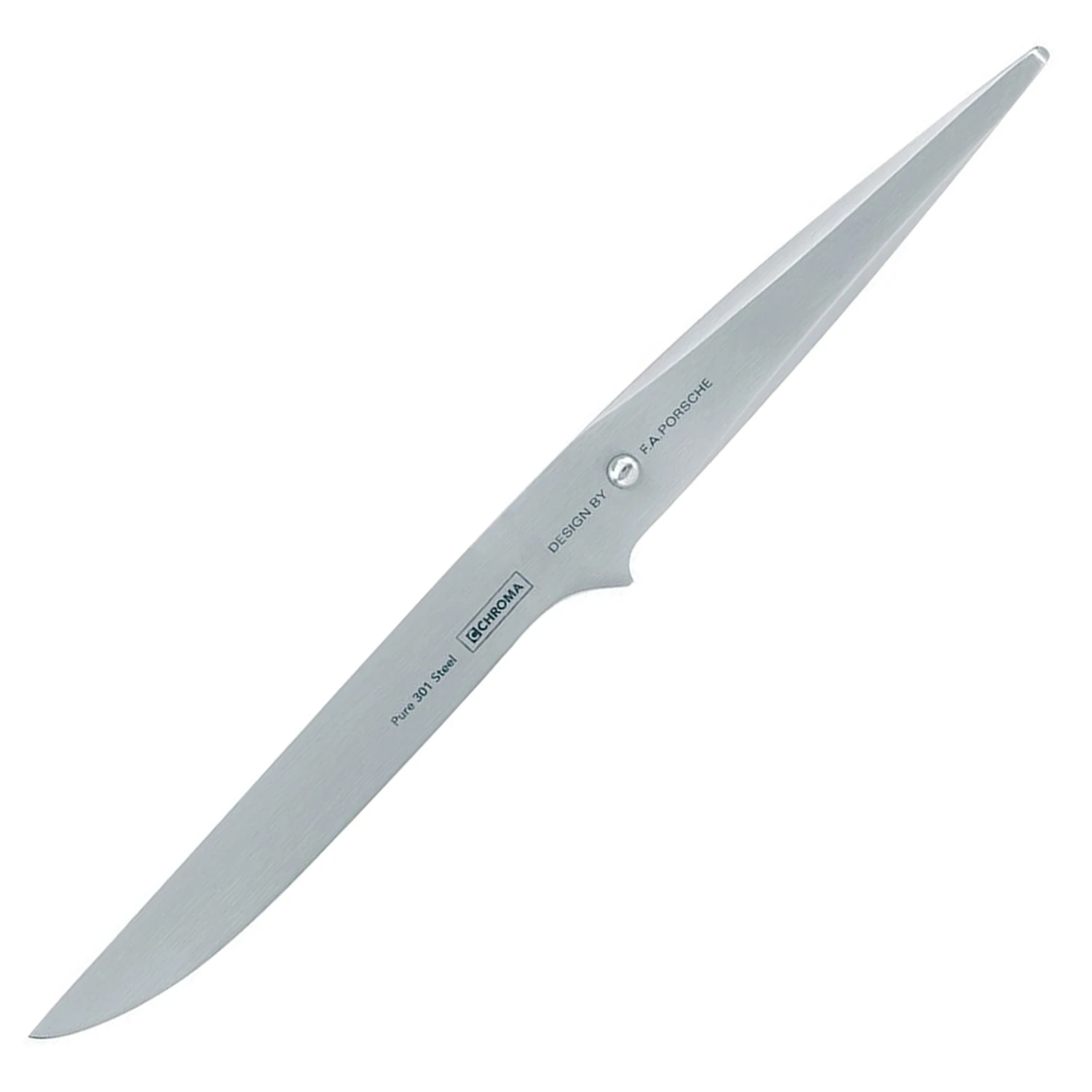 The handle of the CHROMA type 301 – Design by F.A. Porsche is constructed of stainless steel, and the blade is made of high-quality Japanese 301 steel. The blade of each knife is carefully razorsharp sharpened by the hand of a master.