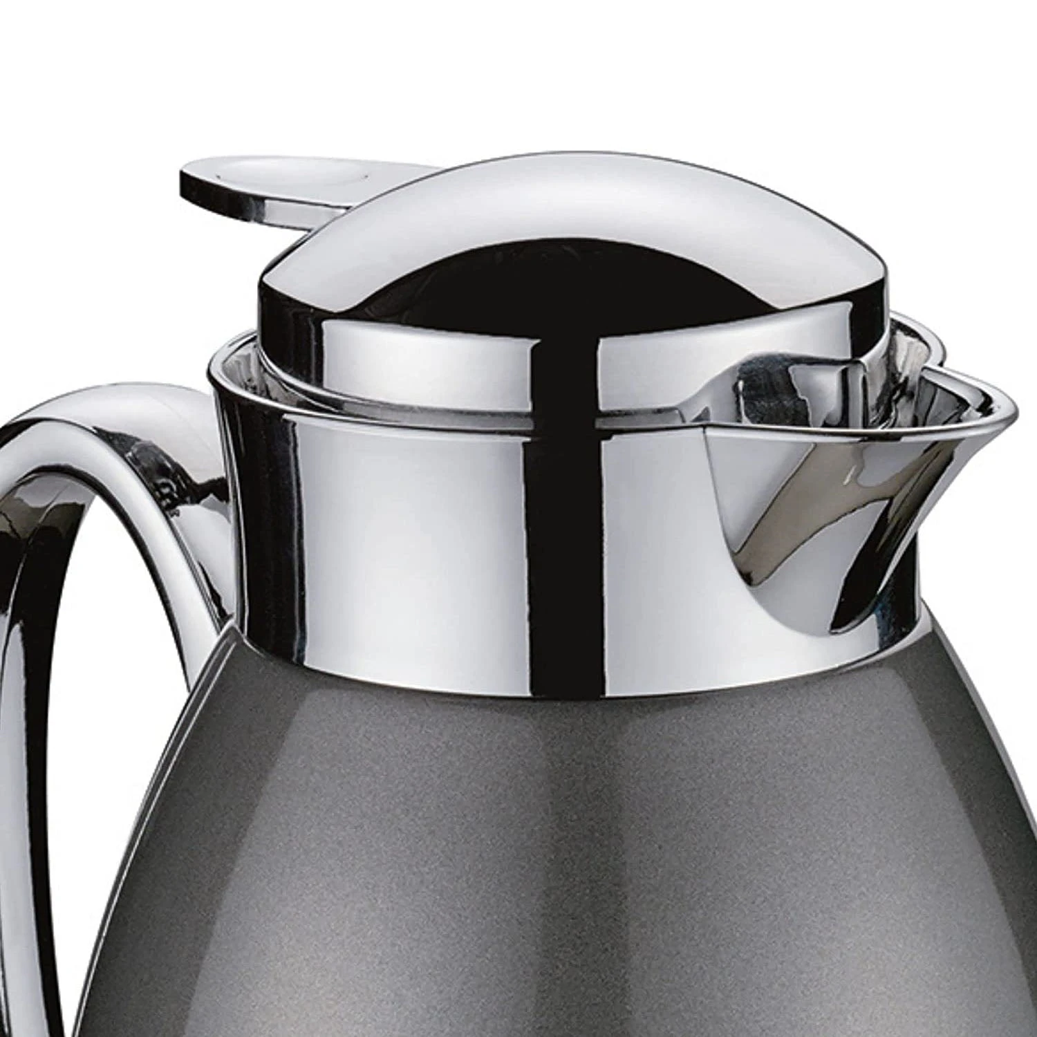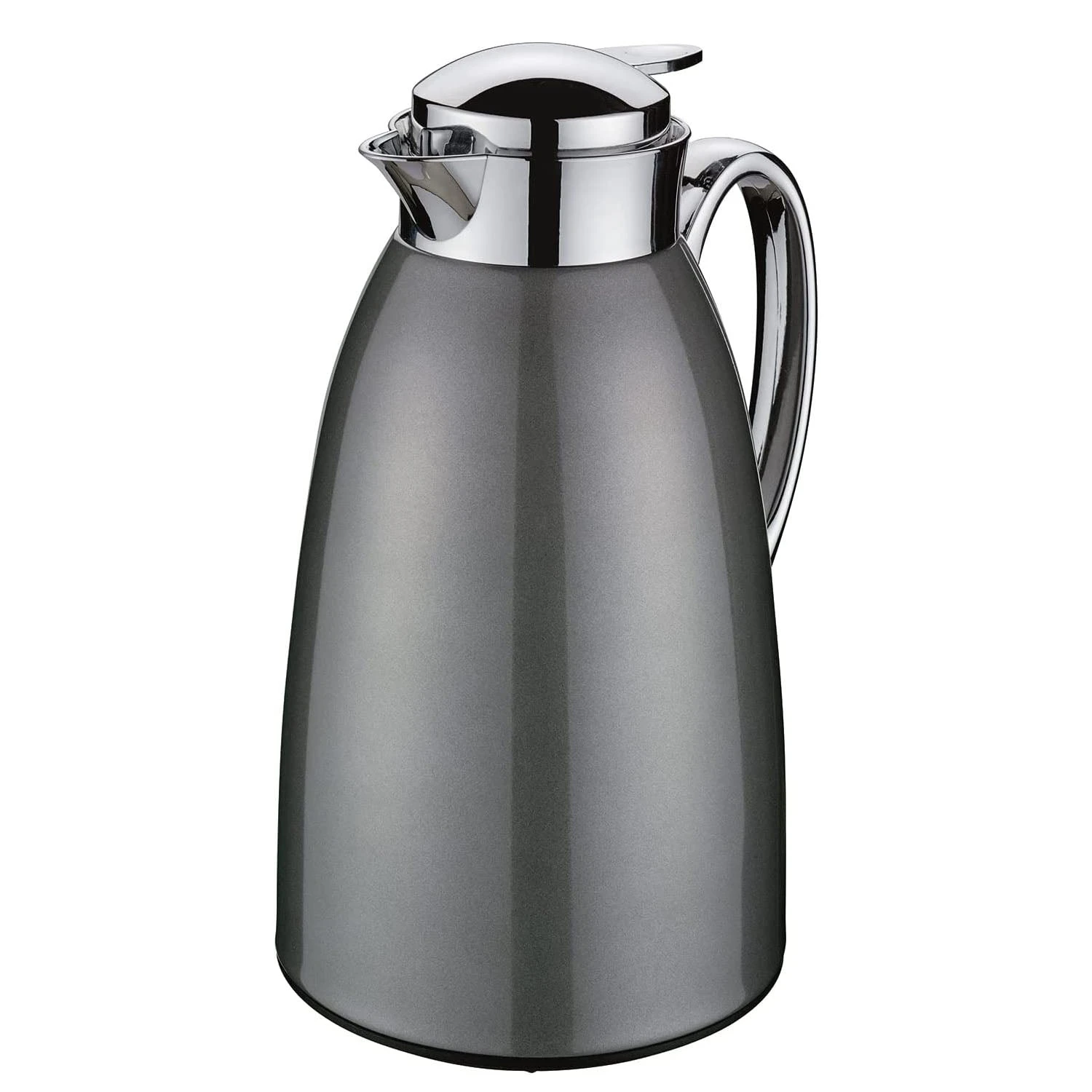 - Stainless steel insulated beverage server with tempered glass liner; cool gray satin finish