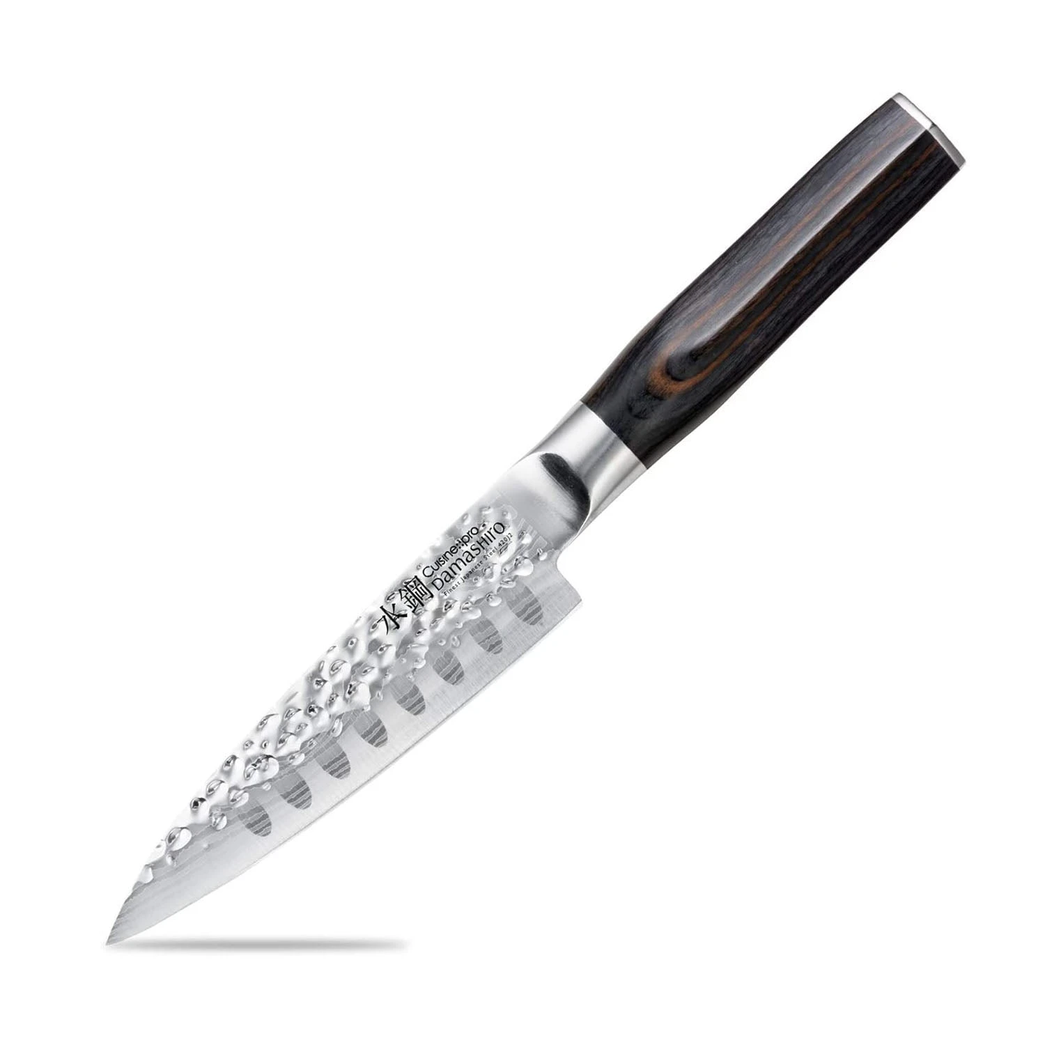 Experience professional quality in your kitchen with the Cuisine::pro® Damashiro® Emperor Utility Knife. Versatile and multi-purpose, the Damashiro® Emperor Utility Knife is an essential kitchen accessory. Crafted for maximum control and ease of use this premium knife from the Damashiro® range is extremely durable and comes with a life-time guarantee. The Damashiro® Emperor Utility Knife can be used for a great selection of cutting needs and is an ideal addition to your kitchen utensils for the ultimate cooking experience.