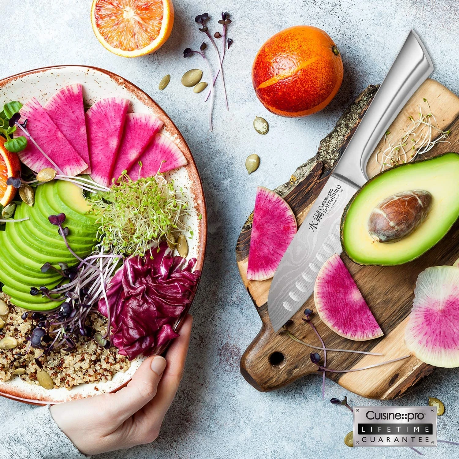 - Cuisine::pro Damashiro knives have been crafted from the finest Japanese Steel 420J2 and ice hardened ensuring for blade strength and durability. The Damashiro range features a distinctive Damascus inspired tradition and traditional Japanese handle design favoured by Japanese craftsman samurai makers.