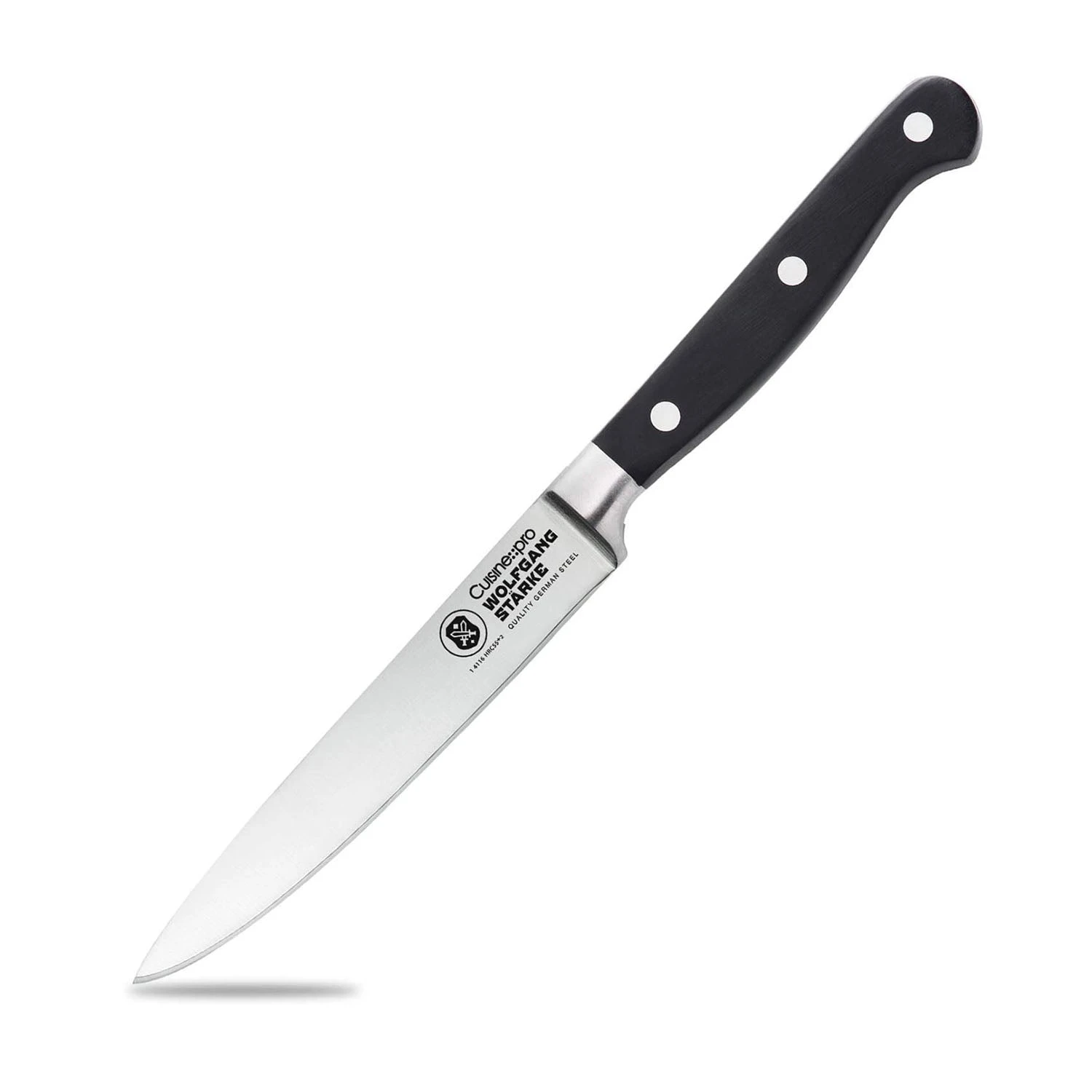 Quality German engineering isn’t just for cars. The Cuisine::pro® Wolfgang Starkeâ„¢ range is premium quality German engineering for your home. The Cuisine::pro® Wolfgang Starkeâ„¢ Utility Knife is a must-have kitchen knife for truly understanding the quality and appeal of this range. Crafted from the finest quality German stainless steel using expert manufacturing techniques that have been developed over centuries, the Cuisine::pro® Wolfgang Starkeâ„¢ Utility Knife features a full tang blade that has been triple riveted into its specially moulded polymer handle to ensure exceptional control, balance and handling while cutting. Thanks to a controlled tempering and ice hardening process, the Cuisine::pro® Wolfgang Starkeâ„¢ Utility Knife is not only incredibly tough, but flexible enough to adapt to produce of varying consistency. Rockwell Hardness tested to the highest possible level, the Cuisine::pro® Wolfgang Starkeâ„¢ Utility Knife is guaranteed to last longer, stay sharper, and absorb less damage over time. Backed by Cuisine::pro®’s Lifetime Guarantee, the quality of the Wolfgang Starkeâ„¢ Utility Knife is something you can feel absolute confidence in.