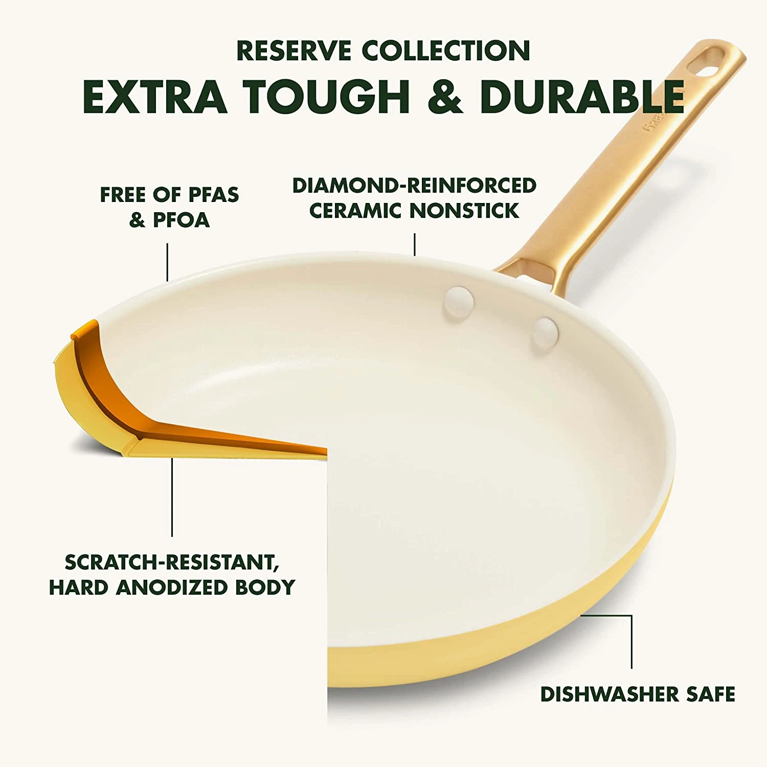 - GreenPan’s Thermolon healthy ceramic nonstick coating is free of PFAS, PFOA, lead, and cadmium, so it will never release toxic fumes, even if it’s accidentally overheated