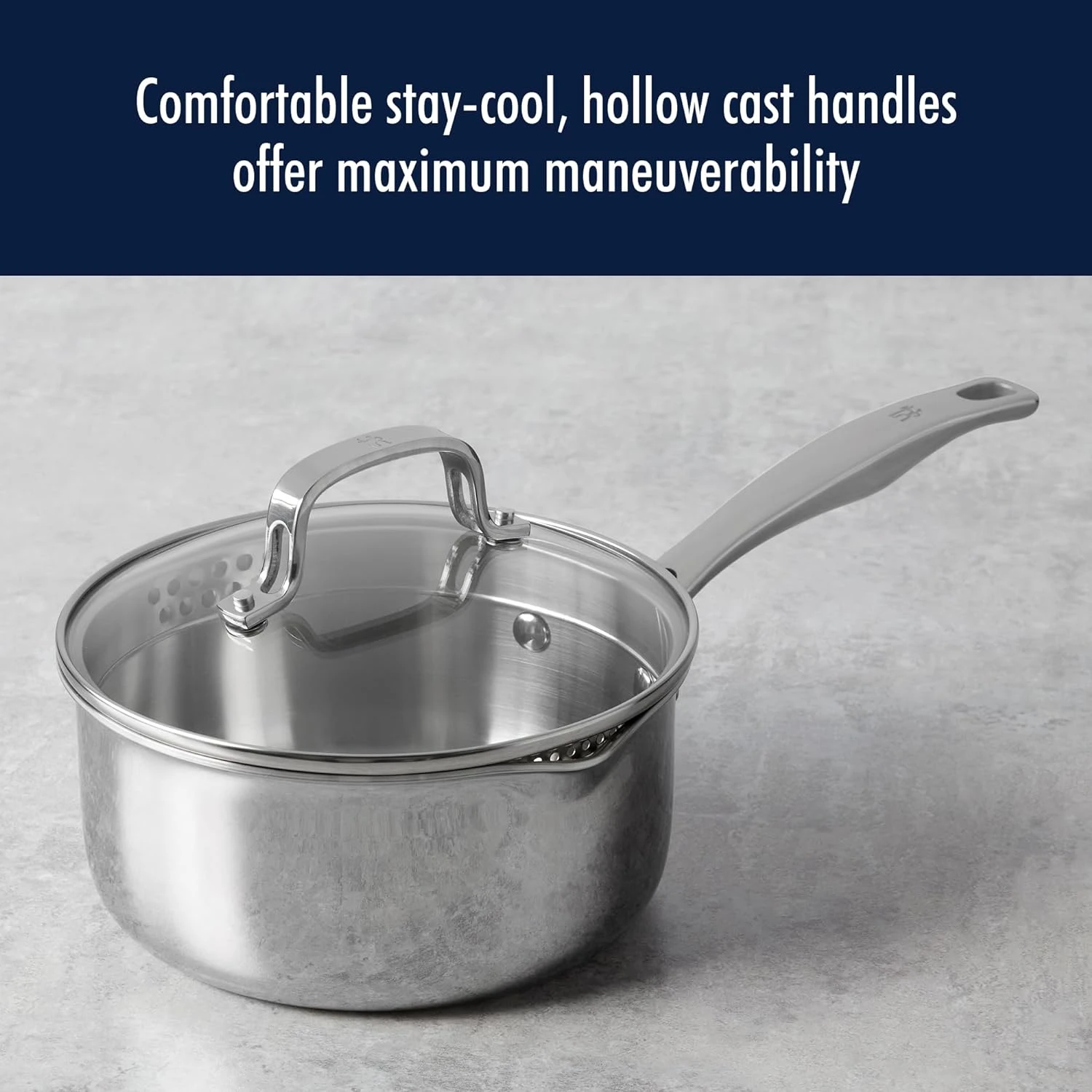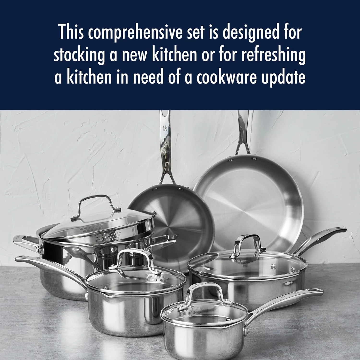 HENCKELS Clad H3 stainless-steel cookware offers exceptional performance combined with durability, technological innovation, and exquisite style. This comprehensive 10-piece set is designed for stocking a new kitchen with all the essential pans, or for refreshing a kitchen in need of a cookware update.