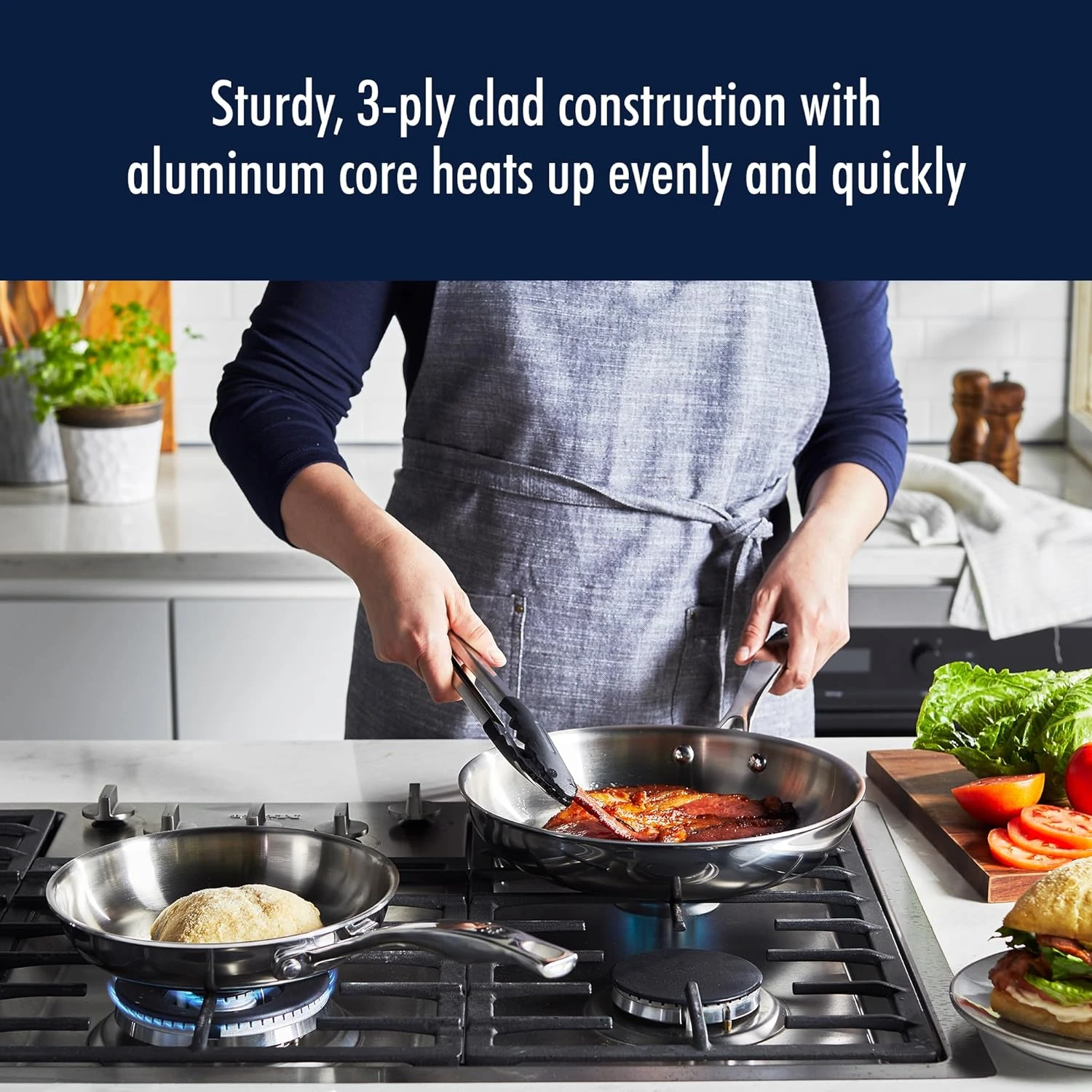 - EVEN HEATING: Heavy-duty, tri-ply clad construction with aluminum core heats up evenly and quickly.