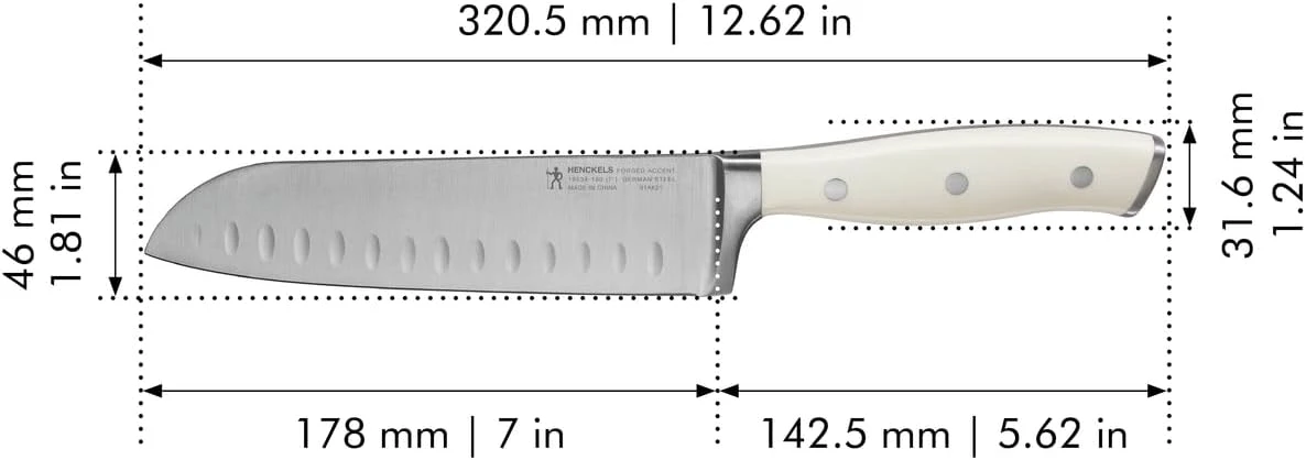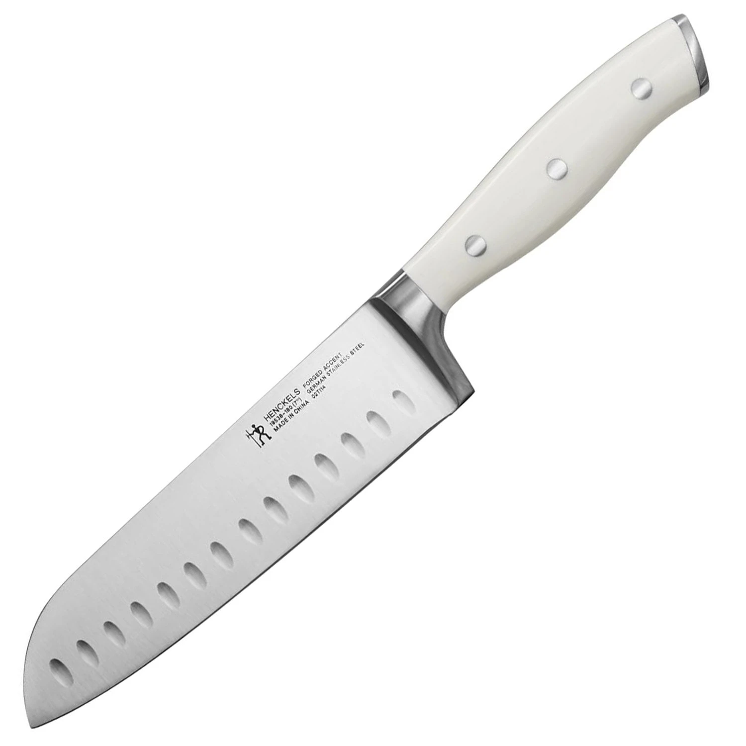 Enjoy High Performance With This Elegant Knife Line. This sophisticated line from HENCKELS marries superior cutting with an elegant profile. Enjoy the best results while beautifying your kitchen. With a stylish curved triple-rivet handle featuring an attractive endcap, these knives will be a welcome addition to your kitchen countertops. Forged Accent knives are fabricated from high-quality German stainless steel, perfect for precision cutting. The forged bolster construction seamlessly transitions from blade to handle for durability and balance. Curved for comfort, the triple-rivet handle features a stylish, stainless-steel endcap that adds aesthetic appeal to your knife block. Stamped with the single man HENCKELS logo, this Halberdier symbolizes Forged Accent’s superb quality at a remarkable value.