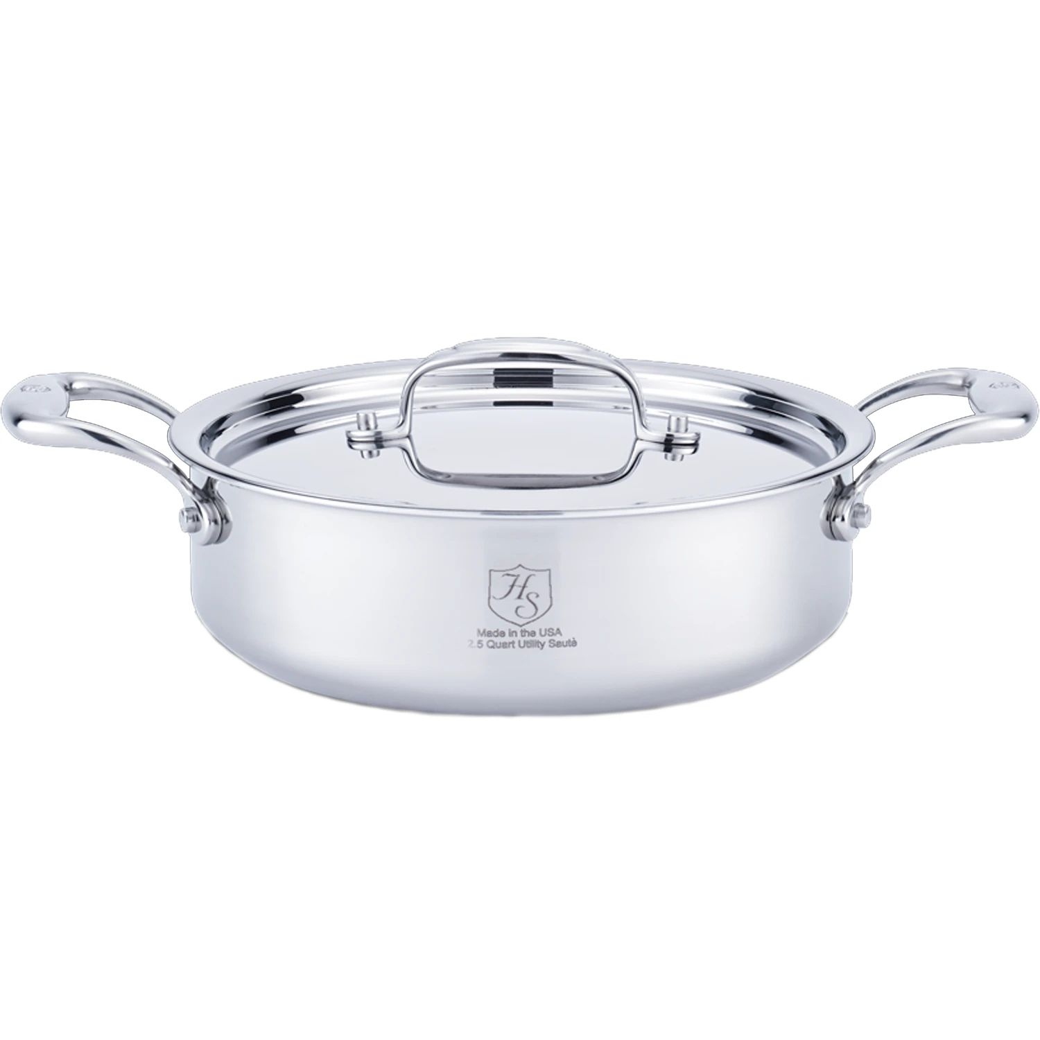 - 5 PLY CONSTRUCTION: Multiple layers of metal including 3 layers of aluminum for enhanced heat conductivity and durability. The exterior titanium-strengthened 439 steel will maintain its luster for a lifetime of cooking.Â