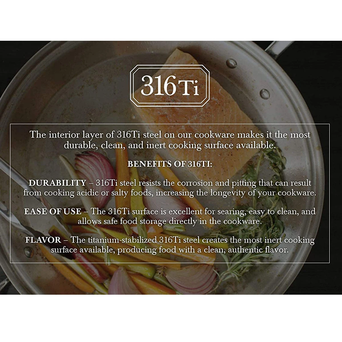 - 5 PLY CONSTRUCTION: We use multiple layers of metal including 3 layers of aluminum for enhanced heat conductivity and durability. The exterior titanium-strengthened 439 steel will maintain its luster for a lifetime of cooking. Use on any type of stovetop including induction and in the oven.