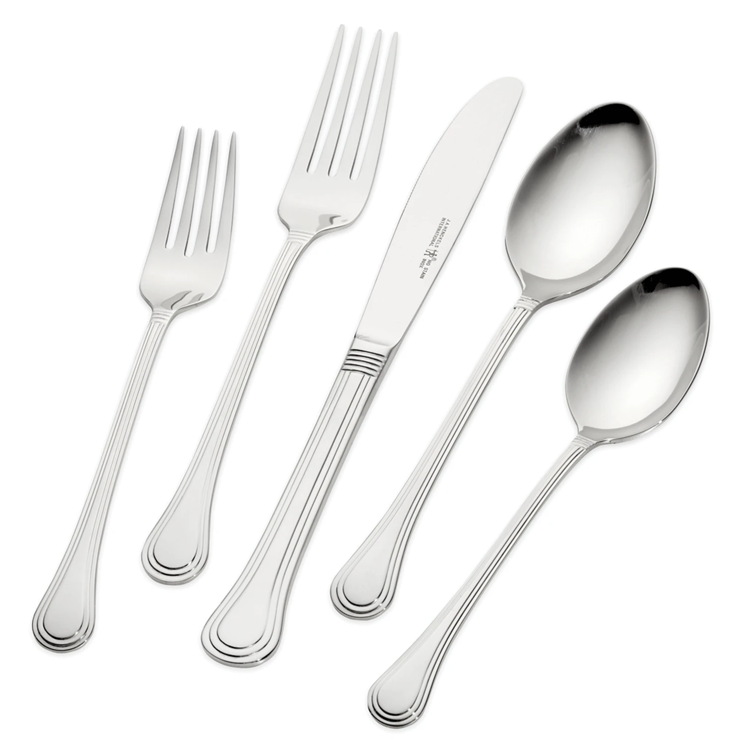 Henckels International makes essential kitchen tools every home chef needs. With HI Flatware, this trusted brand brings over 120 years of cutlery expertise to the world of flatware. Each piece is fabricated from high-quality 18/10 stainless steel for optimal corrosion resistance with a luster finish.