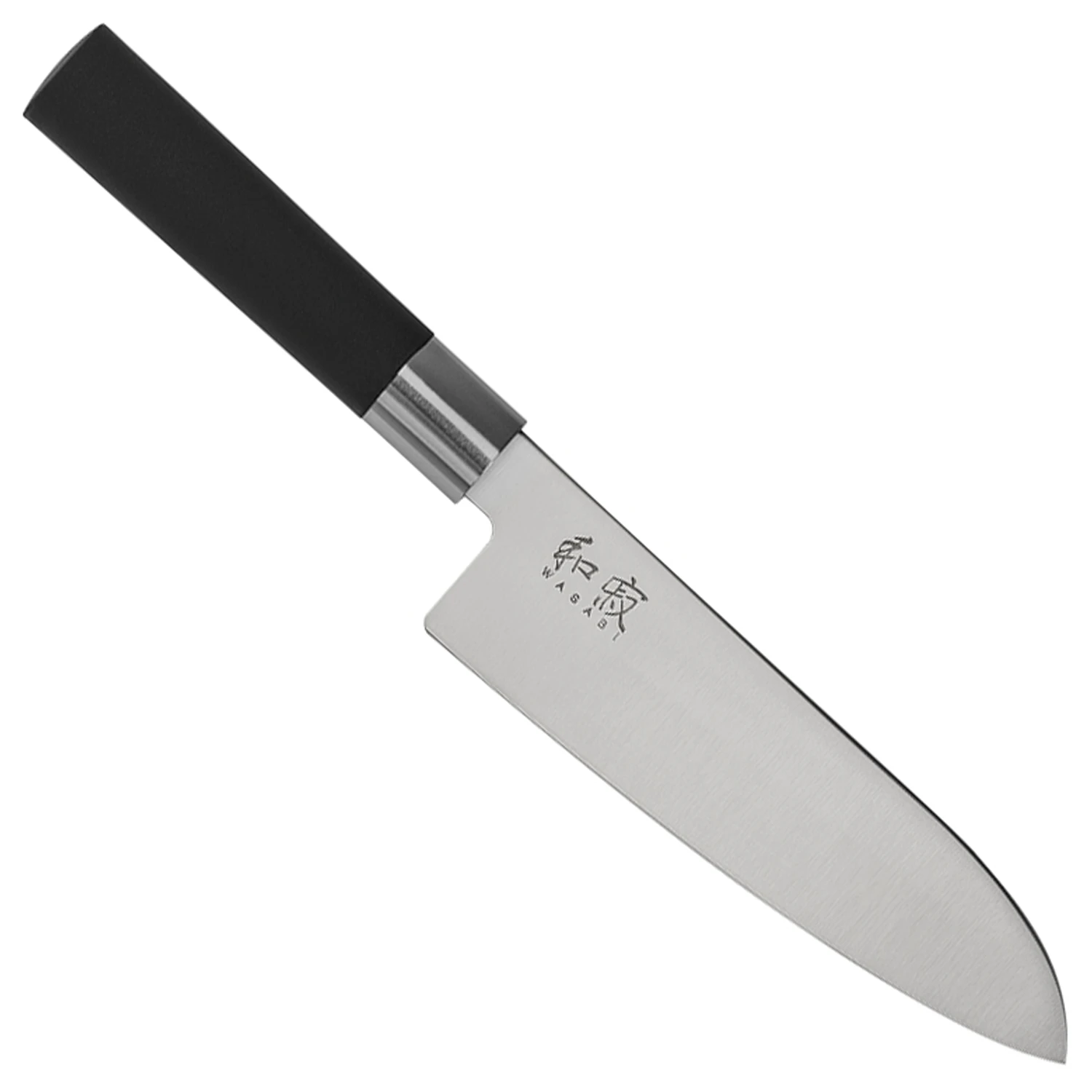 The Wasabi Santoku is part of Kai’s Wasabi series. The series features traditional Japanese single-bevel blade shapes as well as a selection of double-bevel Western-style blade shapes. Single-beveled blades excel when extremely precise cuts are needed—for example, when preparing sushi. Double-beveled blades offer ease of use and versatility. Wasabi brings you the best of both worlds. The blades are high-carbon stainless steel designed to take and hold a sharp edge, with a graze finish that gives them an attractive, brushed look. Paired with black polypropylene handles in a traditional Japanese style, Wasabi brings beauty and harmonious food preparation to any kitchen.