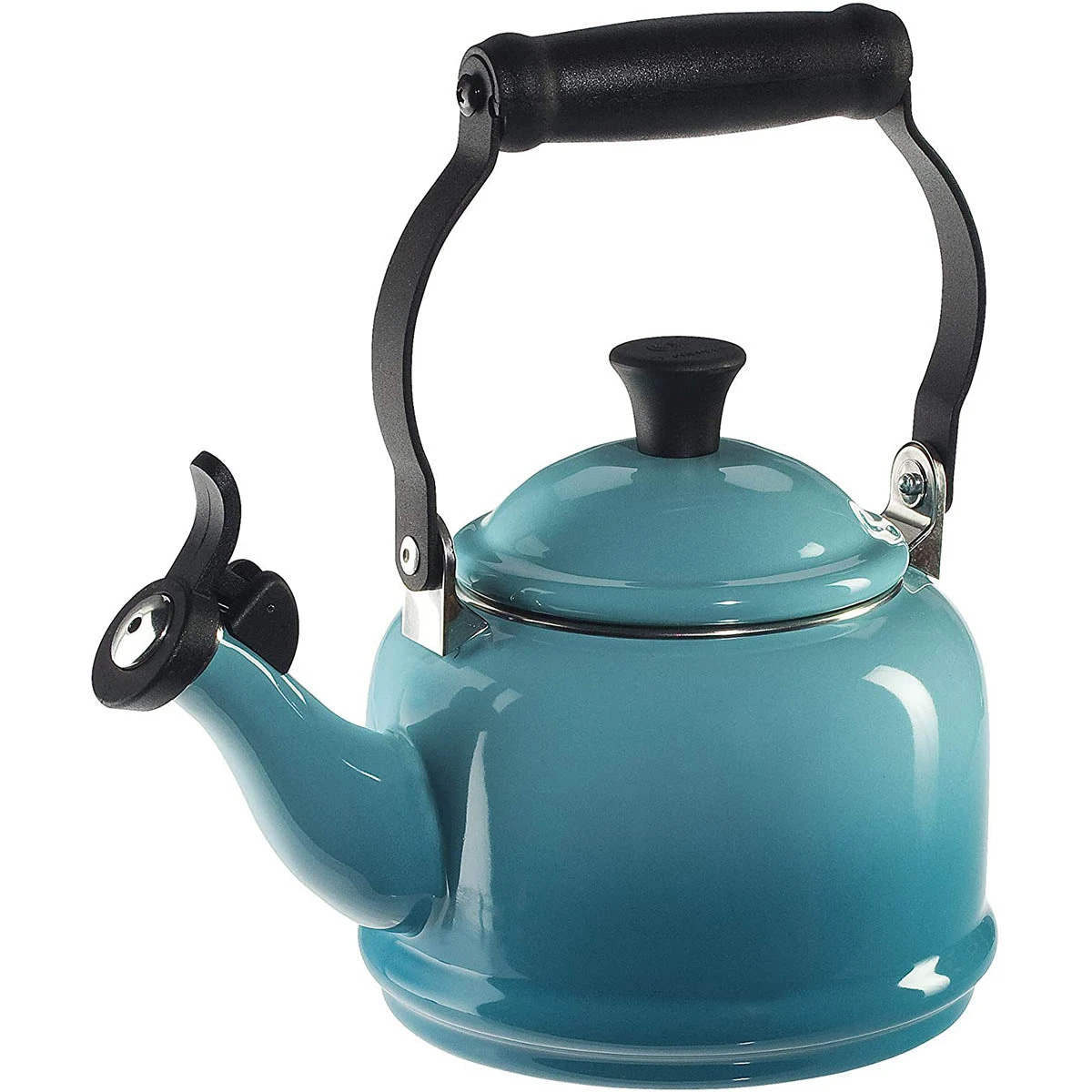 The Le Creuset enamel on steel Demi Kettle is crafted from fast-heating premium carbon steel glazed in our stylish palette of colors and unique designs to complement any kitchen. Useful for preparing French press coffee, oatmeal, and much more in addition to tea, durable carbon steel heats water rapidly, and a fixed single-tone whistle alerts when the water has reached a rolling boil. Chip-resistant, non-reactive, resistant to stains, and easy to clean, Le Creuset kettles make excellent gifts and are a beautiful way to add a touch of color to the kitchen.