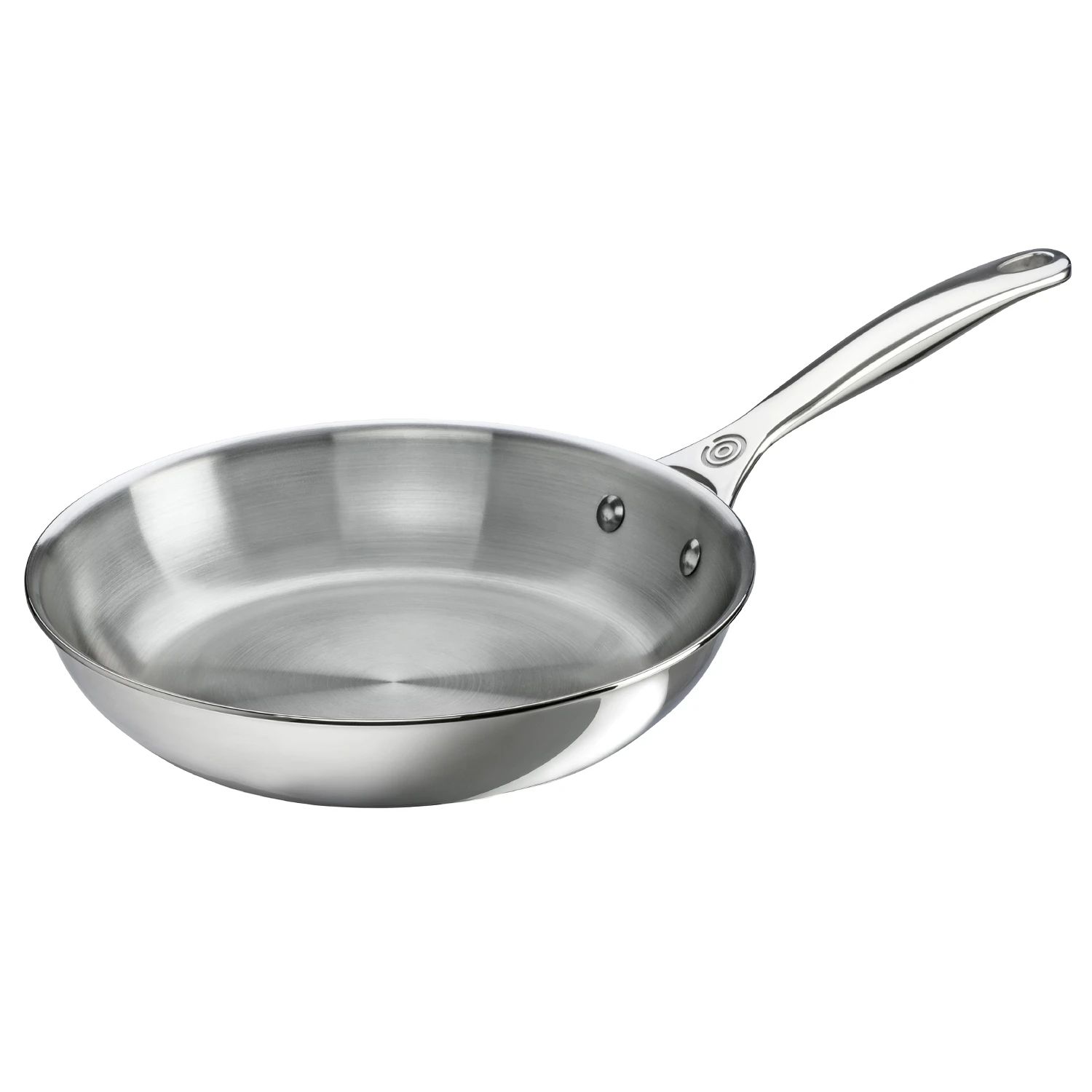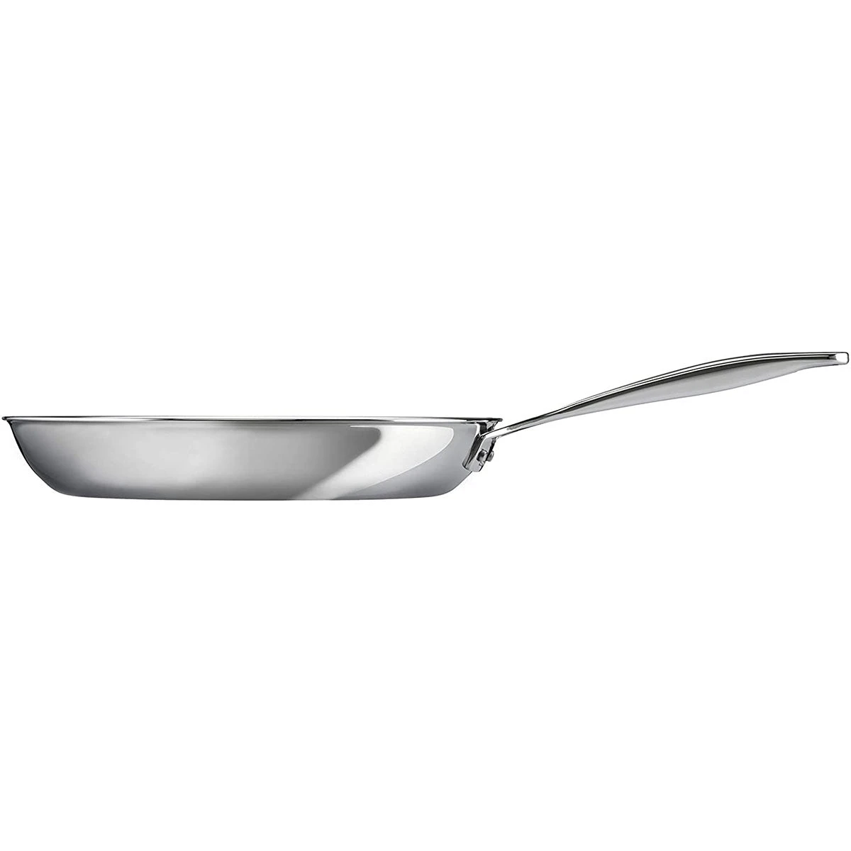 The fry pan features an ergonomic stay-cool handle for easy maneuvering. Tri-ply construction ensures even heating, and makes this pan ideal for many kitchen tasks, from searing and sauteing to pan-frying and simmering.
