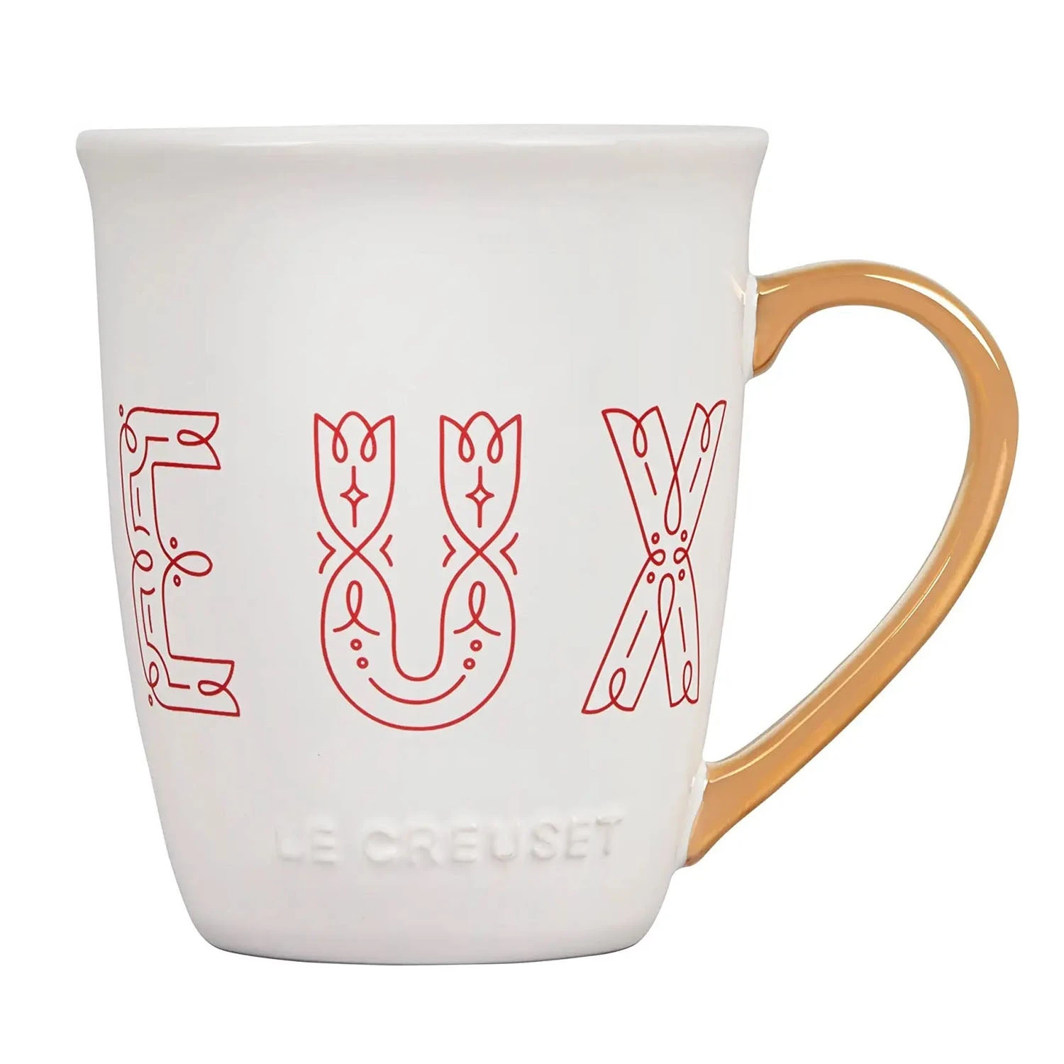 With a plentiful 20-ounce capacity, the Noël Collection Extra-Large Joyeux Mug is sure to bring joy to the holiday season. It’s perfect for generous cups of coffee, tea, hot chocolate, heart-warming soups and even scoops of ice cream and festive mug cakes. The comfortable handle with gold appliqué ensures a firm grip, and the delicate wrap-around lettering makes a joyeux, light-hearted holiday statement. Crafted from the finest quality stoneware to keep contents warm or cold, it’s finished with a vibrant white glaze which is easy to clean and resistant to chips, scratches and stains.