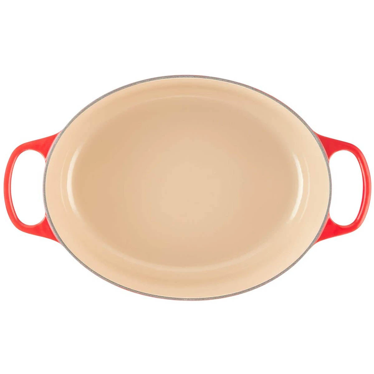 The iconic Le Creuset Oval Dutch oven is indispensable in the kitchens of home cooks and professional chefs alike. Long recognized for its strength and durability, cast iron is the prime material for slow-cooking, braising, and roasting, thanks to its ability to maintain even and consistent heat. The enameled Dutch oven needs no seasoning, and it’s suitable for both stovetop and oven use. Le Creuset produced the first enameled cast iron cookware nearly a century ago, and the original foundry still operates today, where 15 skilled artisans hand-inspect each piece. This tradition of the finest culinary craftsmanship, combined with the latest innovations in comfort and functionality, makes Le Creuset unsurpassed in both beauty and quality.