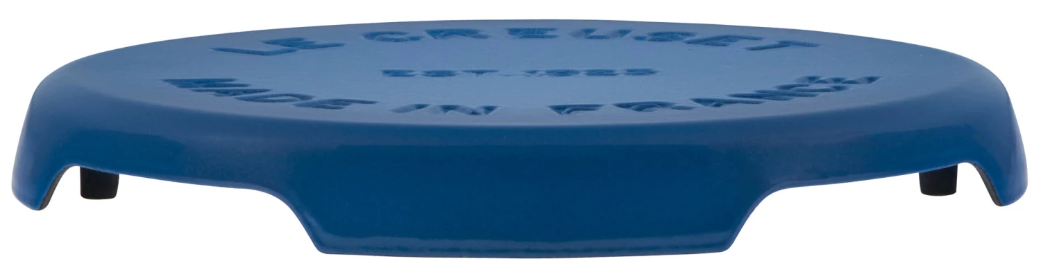 Crafted from the same legendary enameled cast iron and vibrant colors as Le Creuset cookware, the 9-in. round Signature Trivet protects surfaces from heat and condensation. The clever footed design elevates hot dishes, platters and cookware above counters and tables, while also allowing air to circulate underneath. Silicone pads on the feet provide a stable base and help protect surfaces.