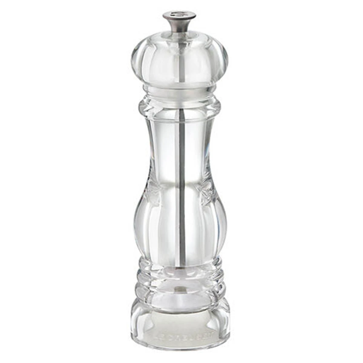 The Le Creuset Acrylic salt and pepper mills combine classic form and modern technology with a twist on the iconic colors. The acrylic grinder is strong enough to crack peppercorns and corrosion-resistant for grinding salt. Adjust the grind setting with a turn of the knob — clockwise for a finer ground and counterclockwise for a coarser grind.