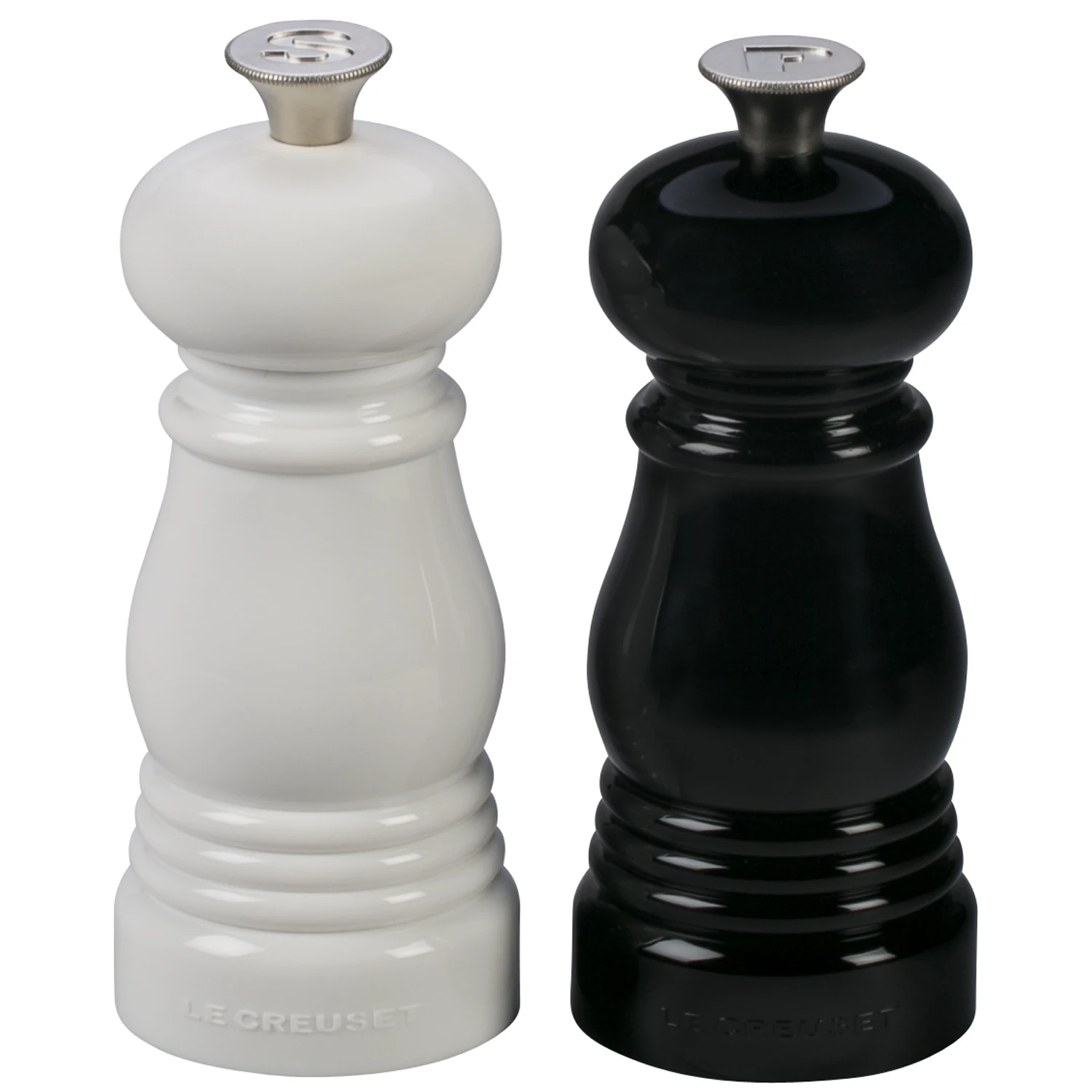 Le Creuset salt and pepper mills combine classic form and modern technology with our iconic colors. The ceramic grinder is strong enough to crack peppercorns and corrosion-resistant for grinding salt. Adjust the grind setting with a turn of the knob — clockwise for a finer ground and counterclockwise for a coarser grind.
