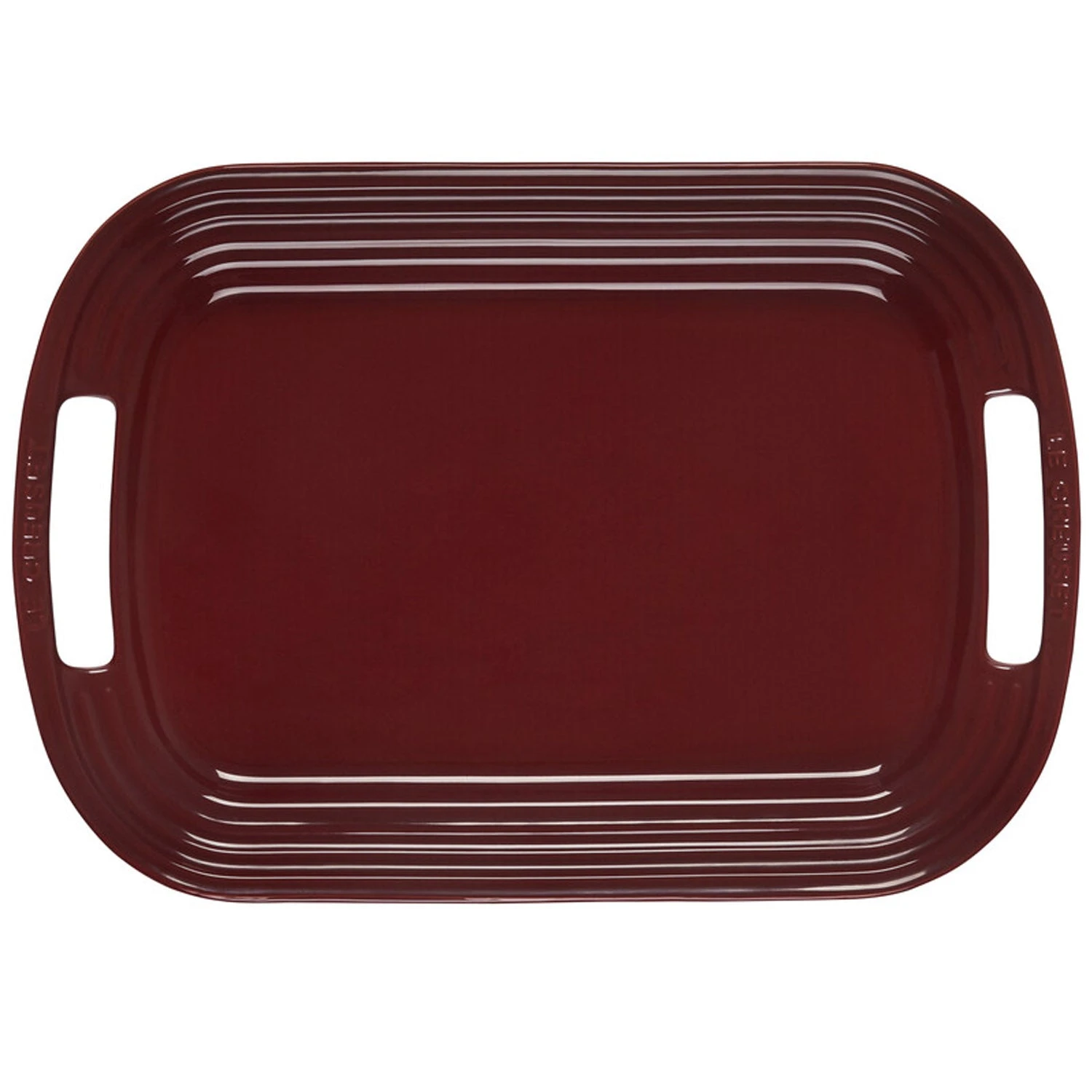 The stoneware Serving Platter features ridged edges that slope upward to contain food, while two wide handles are cut into each end to ensure a steady grip when carrying heavier foods like roasts or poultry from oven to table. Crafted from premium stoneware in our irresistible colors, the serving platters are part of our tableware collection and finished with a vibrant glaze which is easy to clean, dishwasher-safe, and resistant to chips, scratches and stains. Designed to stay beautiful with daily use, Le Creuset’s tableware brings elegant style to every table and occasion.