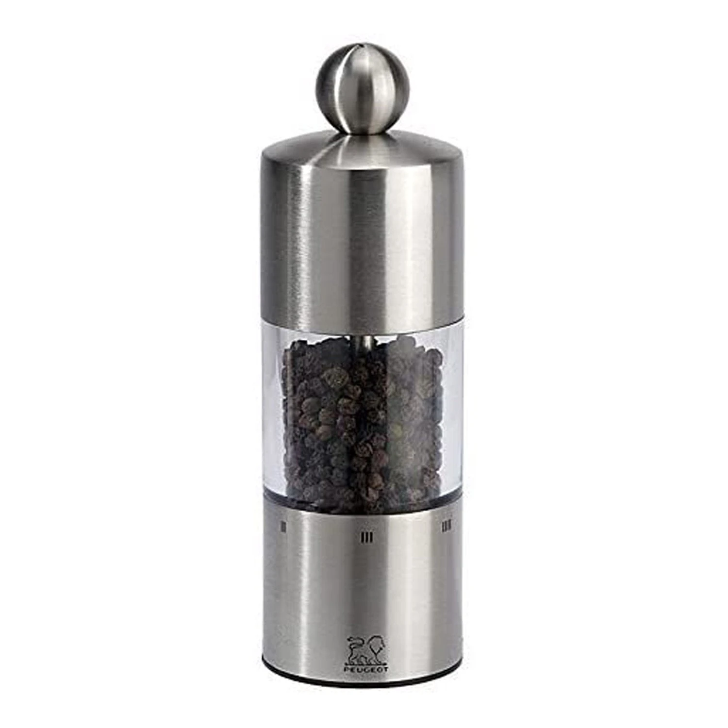 - Mill is 6-inches tall, clear acrylic and stainless steel