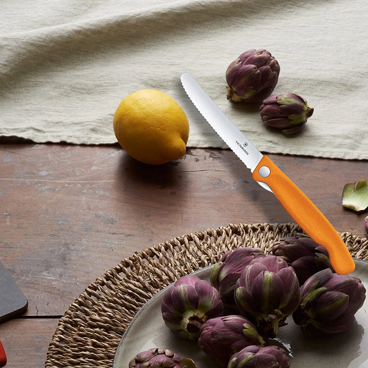 Pared back in form but expressive in personality, our Swiss Classic Foldable Paring Knife does multipurpose its own way. You’ll quickly see it as your new ‘take-anywhere blade’ thanks to its standout quality wavy edge and supreme versatility. What’s more, a kaleidoscope of six colorful handle options injects a sharp and sassy attitude into this hardworking paring partner. Take on the fruit bowl, forest or field with absolute confidence.