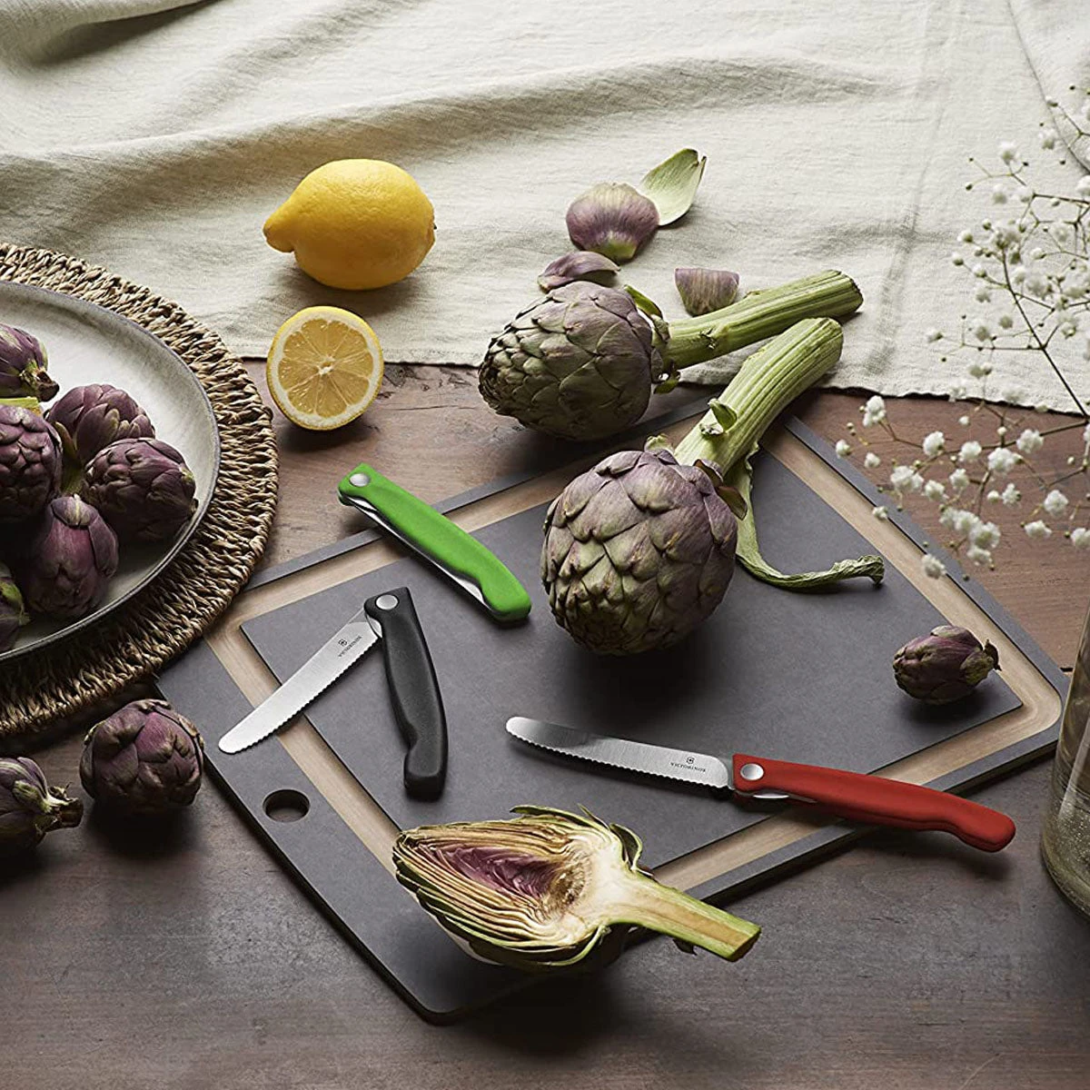 Pared back in form but expressive in personality, our Swiss Classic Foldable Paring Knife does multipurpose its own way. You’ll quickly see it as your new ‘take-anywhere blade’ thanks to its standout quality wavy edge and supreme versatility. What’s more, a kaleidoscope of six colorful handle options injects a sharp and sassy attitude into this hardworking paring partner. Take on the fruit bowl, forest or field with absolute confidence.