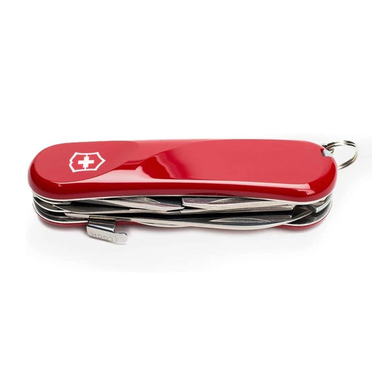- PRODUCT DETAILS: Swiss made pocket knife with 14 functions. Height: 0.8 in, Length: 3.3 in., Weight: 2.7 oz., MM: 85mm, Scale Material: ABS/Cellidor
