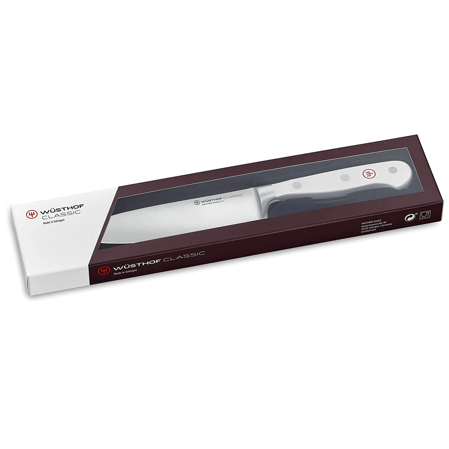 The Classic White Series by Wüsthof embraces all the favourite features that food lovers and professional chefs have come to rely on from the Classic series, but now with a refined white handle. The White series combines Wüsthof’s 200 years of experience in the art of forging knives with a modern simplistic design for timeless knives that offer everything you need for preparing and plating fresh food. With 55 production steps and over 20 uncompromising quality checks, each Classic White knife is perfectly crafted, and remains sharp for any kitchen prep task. The handle now features the renowned Wüsthof trident embedded in the handle for a modern take on an old classic. Perfectly balanced, each knife is comfortable to hold as you prep ingredients for any dish with effortless control. Manufactured entirely in Solingen, Germany. Wüsthof is the world’s leading manufacturer of high-quality premium knives for professional chefs and home cooks. Family owned for seven generations, Wüsthof was founded in Solingen, Germany, known as the “City of Blades” over 200 years ago. To this day, every Wüsthof knife is still expertly crafted in this legendary city. Excellent quality, sustainable performance and innovative ideas guarantee that production is among the most advanced of its kind. To meet the demands of every kitchen, Wüsthof offers a wide range of over 350 blades, including chef’s knives, specialty knives, utility knives, all-purpose knives, along with kitchen accessories and tools. From knife block sets, individual knives, honing steels, high-quality knife sharpeners, cutting boards and blade protection- you will always find a great gift idea for the professional chef or home cook in the Wüsthof range.