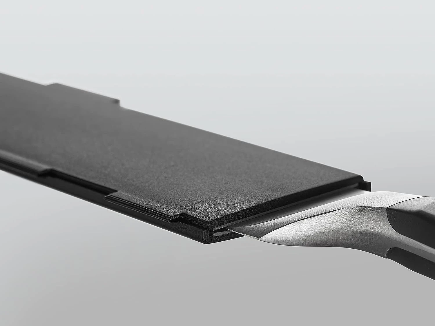 Knives dull over time, not only through use but also through inappropriate storage. The WÜSTHOF Magnetic 10″ Blade Guard ensures safe storage of your knives, protecting them from scuffs and damage. This hinged blade protector is easy to open and is magnetized which allows for secure closure.