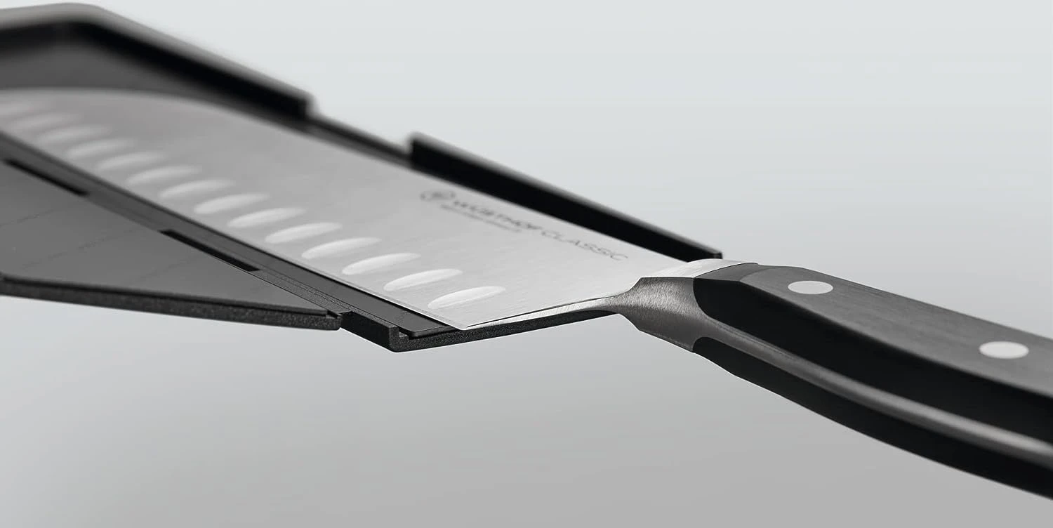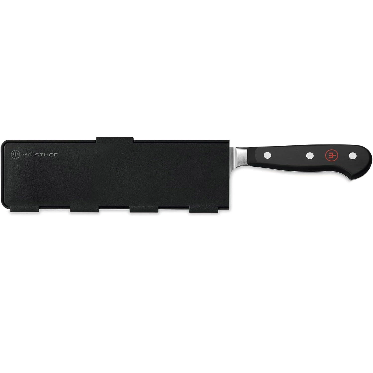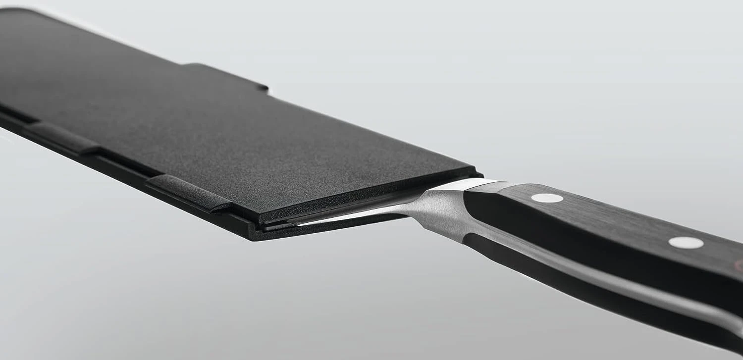 Knives dull over time, not only through use but also through inappropriate storage. The magnetic WÜSTHOF Blade Guard ensures safe storage of your knives, protecting them from scuffs and damage. This hinged blade protector is easy to open and is magnetized which allows for secure closure.