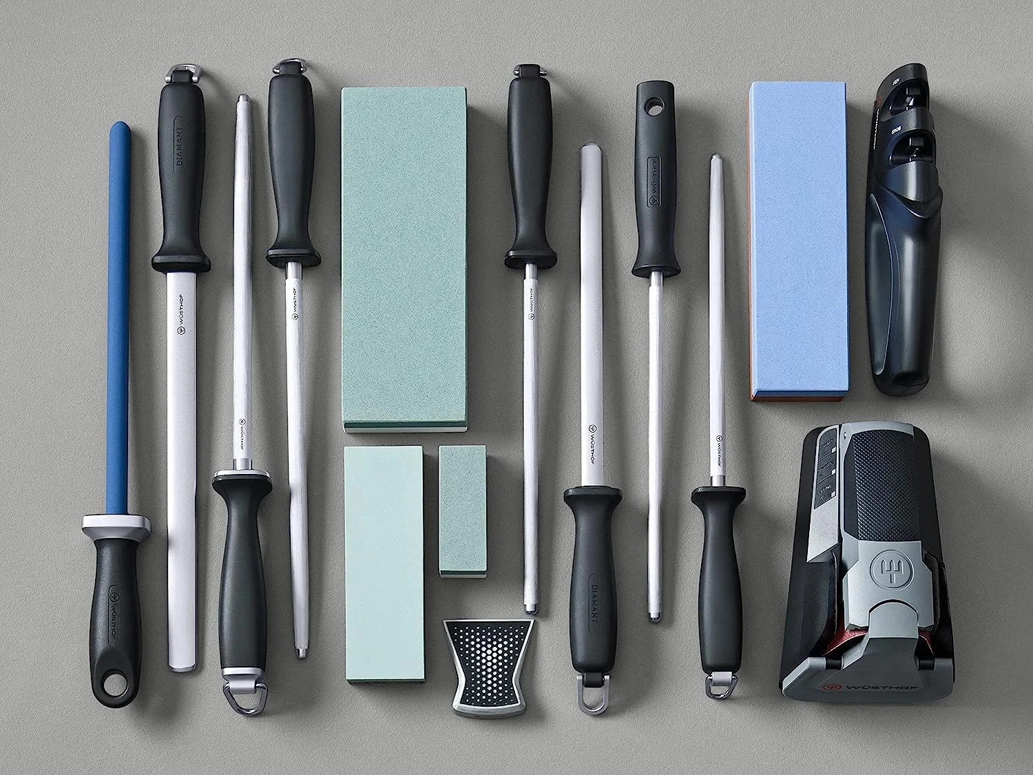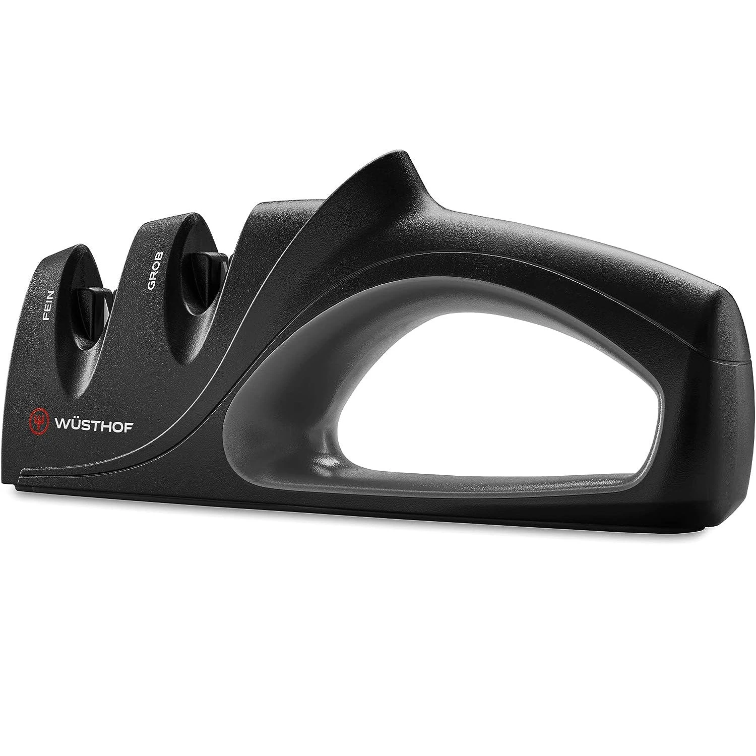 The WÜSTHOF Two-Stage Hand-Held Knife Sharpener is a safe and easy way to keep your knives professionally sharpened at home. With hard carbide steel blades for a coarse sharpening stage and fine ceramic rods for the honing stage you can keep your knives razor sharp, or restore dull blades to their sharpest. Detailed instructions are found on the bottom flap of the packaging, please review before use to ensure that you get the best performance.